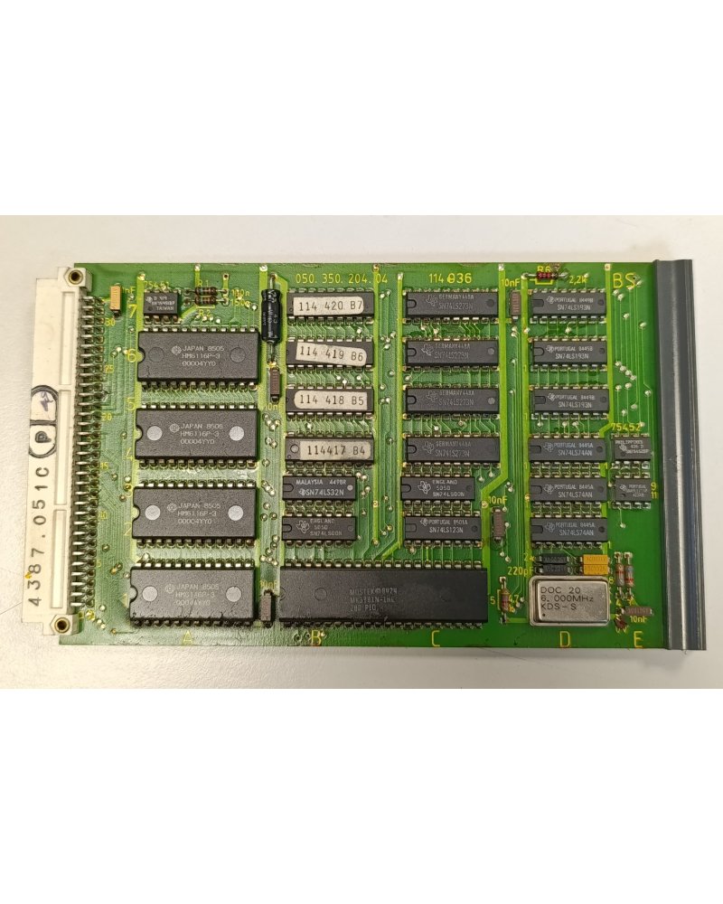 La platine SZA 114 016 (PCB réf. 050.350.204.04) est un module électronique propriétaire Heckler & Koch, intégré dans les centres d'usinage CNC H&K 783. La désignation SZA identifie sa fonction dans le rack de commande numérique H&K, complémentaire à la platine ZEB 113 998 (050.350.203.04) mais fonctionnellement distincte et non interchangeable avec elle.
